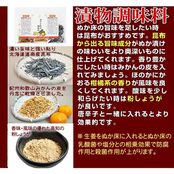 ぬか床 手入れ『漬物専用調味料3個セット』 管理 うまみ 風味 漬物 昆布 みかんの皮 粉しょうが ぬか床 人気 おすすめ メール便対応1通1セット 爆買