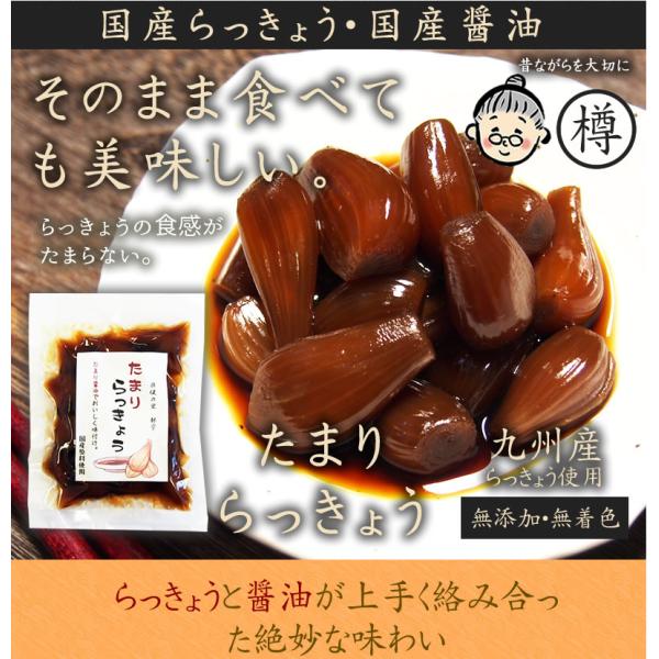国産のらっきょう、こだわりのたまり醤油を使って作られた たまりらっきょう!昔ながらの製法で着色料、化学調味料などは一切使っていない無添加です、甘酢漬けらっきょうとはまた違った美味しさが味わえます。カレーのお供は勿論、お酒のあてにも相性抜群!何とも言えない甘酸っぱさが食欲をそそります! 爆買