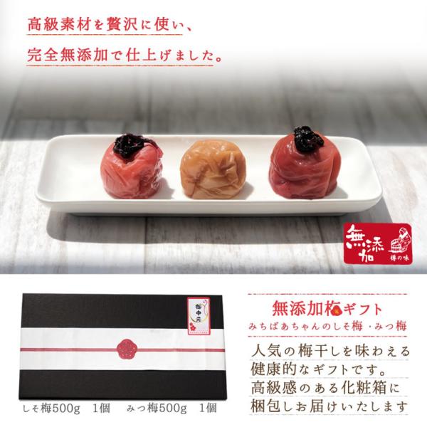 梅干し 無添加 ギフト『みちばあちゃんの梅干し「無添加の梅ギフト しそ梅500g みつ梅500g」』しそ梅 樽の味 無添加 熱中症対策 夏バテ防止 南高梅 薄皮 爆買
