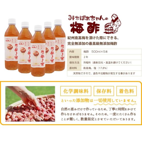 梅酢 無添加『最高級無添加南高梅梅酢 うめ〜ず5本セット』 500ml×5 南高梅 うめ酢 人気 おすすめ 爆買