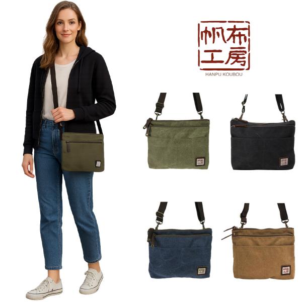【帆布工房】3J53 2way サコッシュ ハンプ 綿 ショルダーバッグ 斜め掛け 肩掛け クラッチバッグ バッグインバッグ カーキ ユニセックス 使いやすい