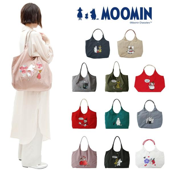 【MOOMIN】RMPK-01 刺繍 トートバッグ ムーミン 軽量 撥水加工 刺繍 デザイン 可愛い ナイロンバッグ