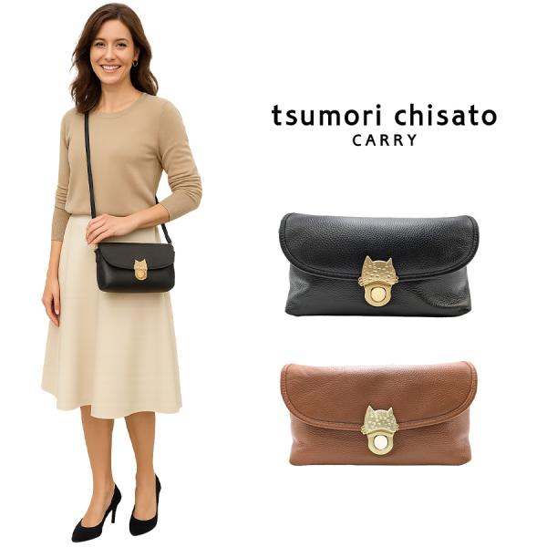 【レターパック配送/時間指定不可】【tsumori chisato CARRY】 53450 NEWカリヤネコ ショルダーバッグS 斜め掛け 牛革 レディース 母の日 ギフト ブラック