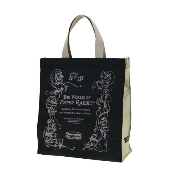 【PETER RABBIT】0646 ハンドバッグ かばん バッグ 手持ち サブバッグ エコバッグ キャラクター 角型 うさぎ ピーターラビット 使いやすい 軽量 ブラック