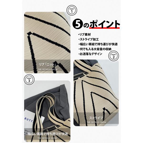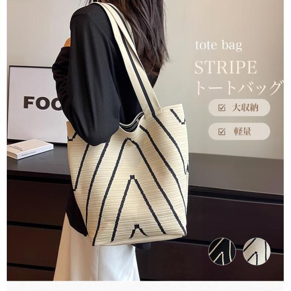 トートバッグ レディース 大容量 大きめ 軽い 肩掛けバッグ ストライプ マザーズバッグ 軽量 手提げバッグ ニットバッグ トート A4 通勤 通学 旅行 爆買