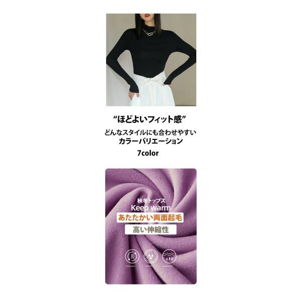カットソー トップス レディース 長袖 tシャツ ハイネック タートルネック きれいめ 秋 冬 ロンT 静電気防止 両面起毛 伸縮性 シンプル かわいい 無地 爆買