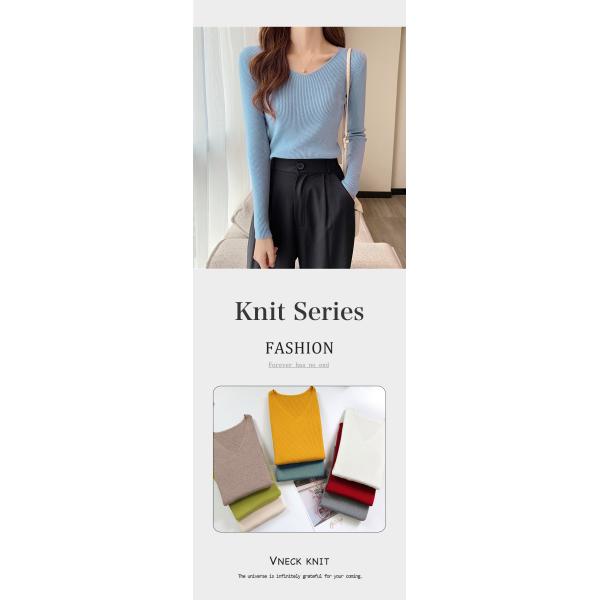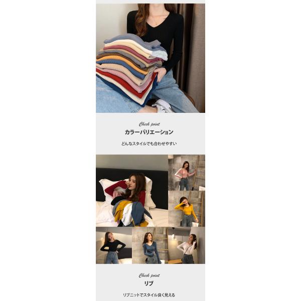 ニット カットソー レディース リブニット トップス セーター 長袖 リブセーター Vネック 長袖ニット プルオーバー インナー おしゃれ かわいい ストレッチ 爆買