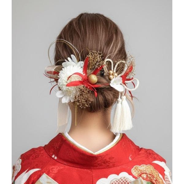4タイプ 髪飾り 卒業式 袴 結婚式 成人式 振袖 和装 着物 ヘッドドレス ヘアアクセサリー花 ヘアピン 全髪型対応 七五三 (白/赤/ゴールド・ブルー/黄/ピンク)86