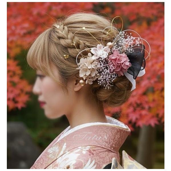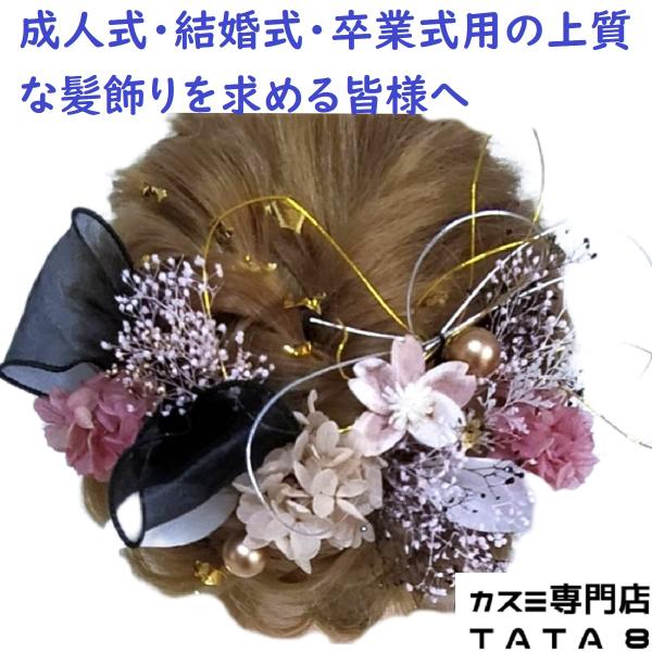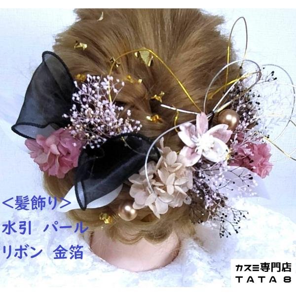 [髪飾りTATA8]春爛漫桜 成人式 振袖 結婚式 卒業式 七五三 袴 白無垢 和装 着物 花 水引き 金箔 パール リボン 白/黒/ゴールド/シャンパン/ピンクライム20