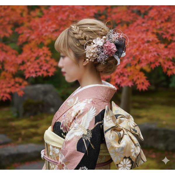 髪飾り 成人式 振袖 卒業式 袴 結婚式 七五三 祭り |造花&プリザーブド 水引き・ 和紐 ヘッドドレス 和装洋装 ヘアアクセサリー(黒/ゴールド/シルバー)892