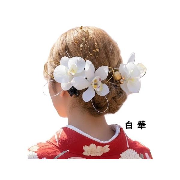 [日本製 髪飾り]4タイプ 成人式 振袖 卒業式 袴 結婚式 和装 着物 かんざし ヘッドドレス ヘアピン付 胡蝶蘭 金箔 花 白/ピンク/シルバー/ゴールド 68eghi