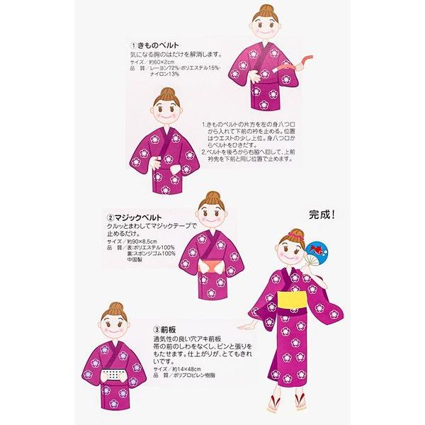 4点セット ゆかた着付けセット (きものベルト/前板/マジックベルト/腰紐)