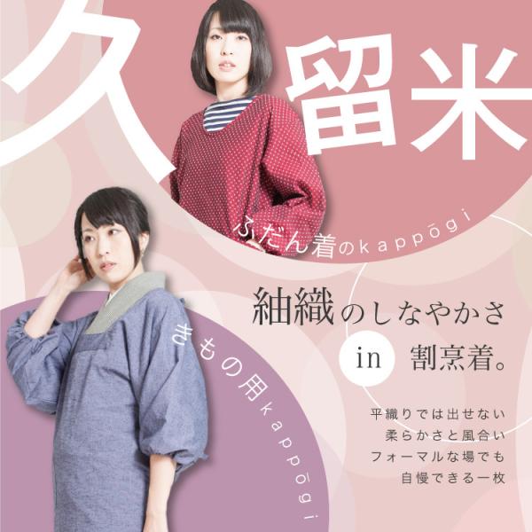久留米の老舗メーカーに別注をかけた、オリジナルの着物用割烹着です。