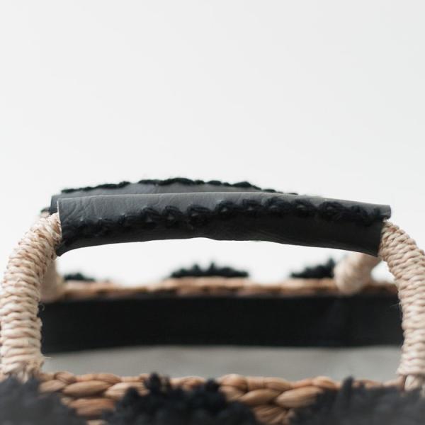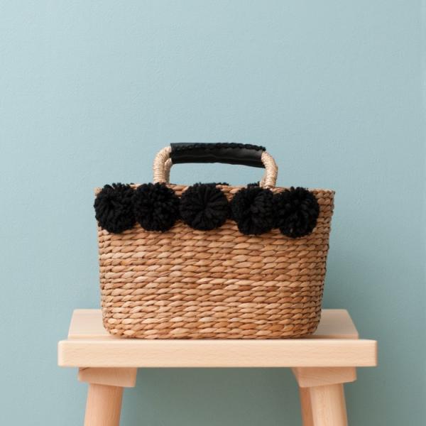 こちらは黒いポンポンがチャームポイントなかごバッグです。浴衣などあまり荷物を持たない時に活躍しそうです。お弁当や、ちょっとそこまでのお買い物にもいいかもしれません。サブバッグにもいかがでしょうか。これからの季節にぴったりのバッグで、コーディーネートのアクセントになること間違いなし!洋装にも、また、和服スタイルにもお使いいただけるかごバッグです。