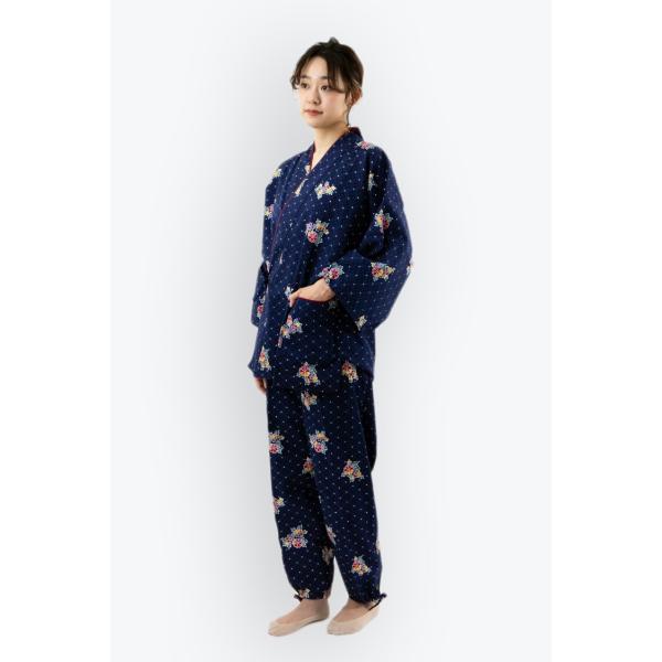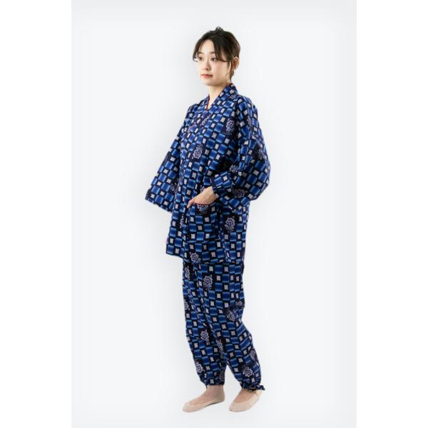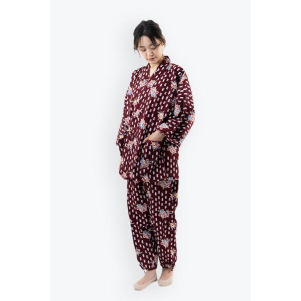 プリント作務衣 女性 おしゃれ レディース 日本製生地 総柄 普段着 女性用 samue 洗える