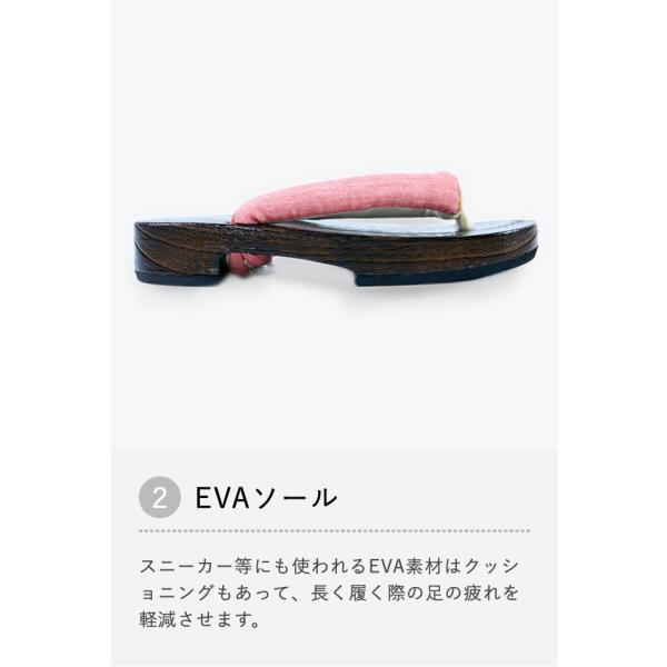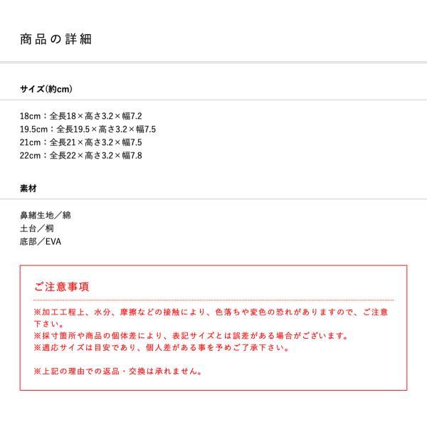 鼻緒の肌に当たる部分は柔らかい素材に変えています。底部には滑り止めも兼ねているEVA素材を搭載、スニーカー等にも採用されているのでお子様でも安心してお出かけを楽しんでいただけます。
