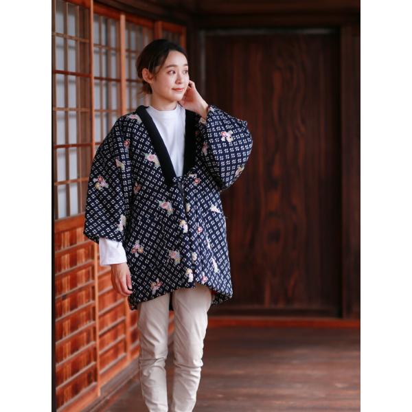 和柄がレトロ可愛いレディースはんてん