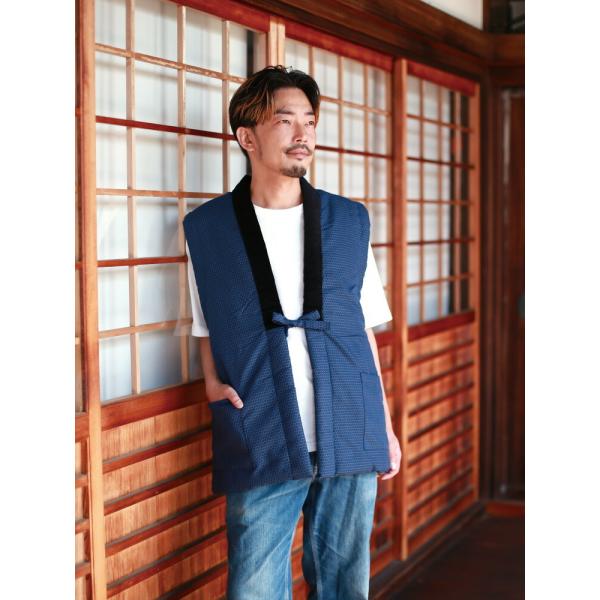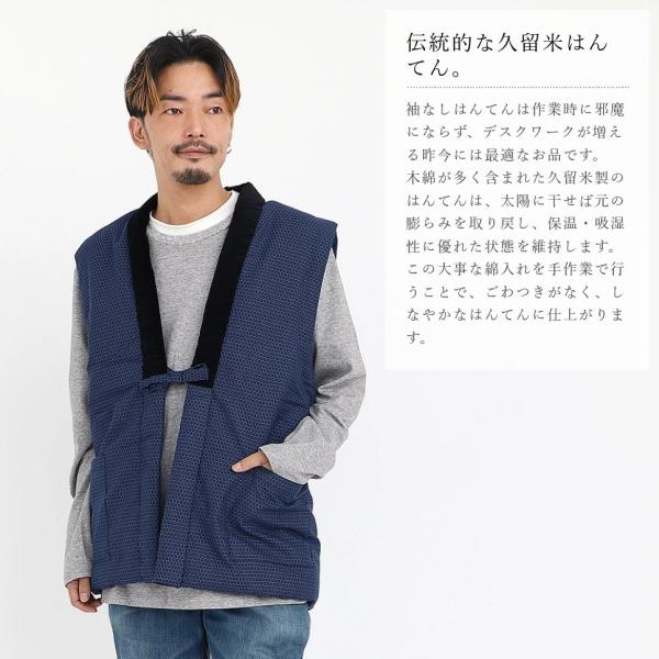 半纏 はんてん メンズ 久留米織 ポンチョ 袖なしはんてん 日本製 M L LL ブルー 紺 紫 亀甲柄 おしゃれ 暖かい 綿入れ 中綿 中わた ギフト プレゼント 贈り物