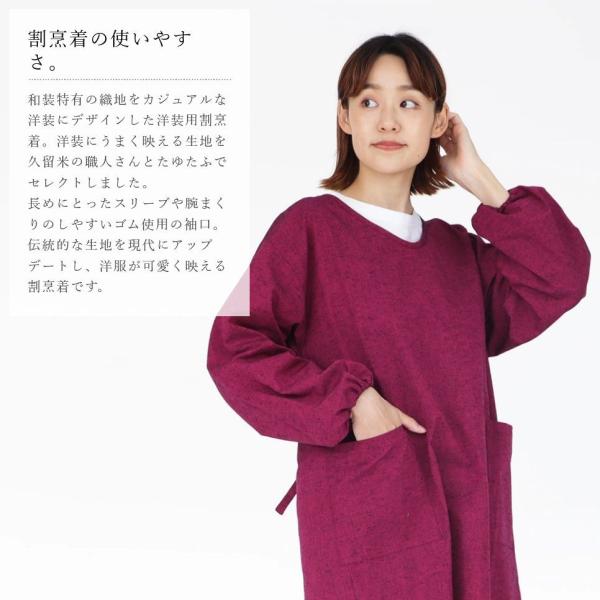 オシャレな室内着と合わせやすい上質な割烹着でおうち時間も有意義に、大切なお洋服も永く大切に着用してください。