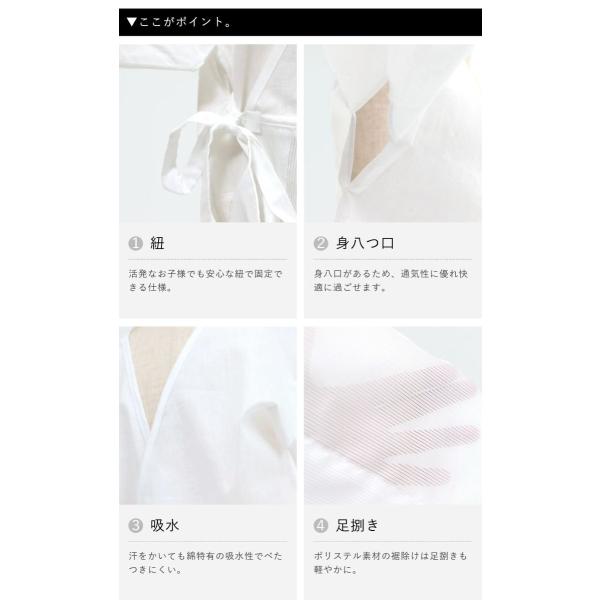 アクティブに動くお子様には着付けも、着用時のストレスも軽減できるワンピースタイプの肌着がおすすめです。