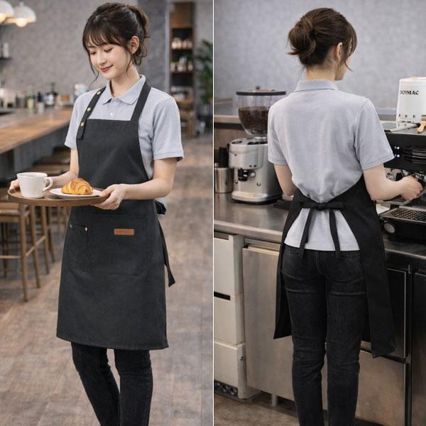 エプロン おしゃれ 防水 シンプル 無地 カフェ ワークエプロン