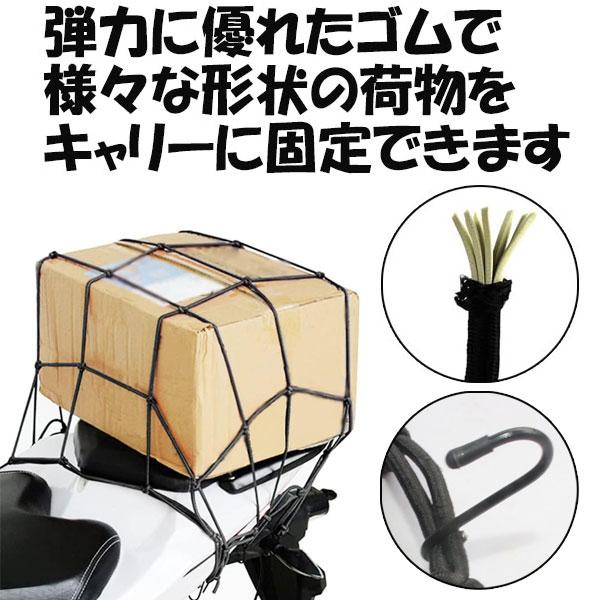 ツーリングネット バイクネット ロックストラップ 荷物 ロープ カーゴフック キャリー 30cm×30cm ゴムひも フック付
