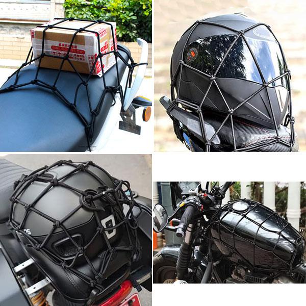 伸縮性に優れたゴムひもでバイクのキャリーに固定できる ツーリングネット