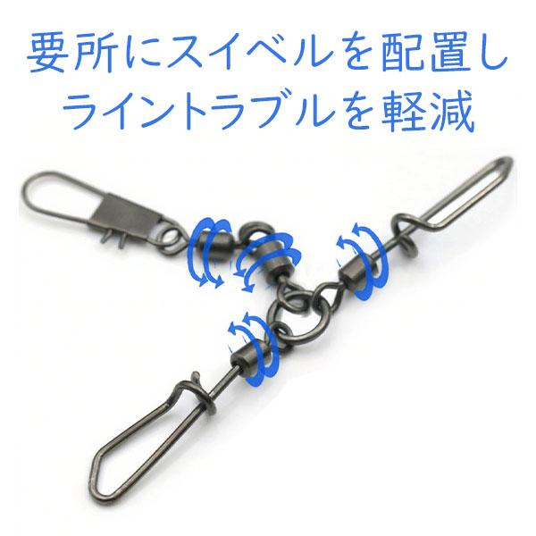タコエギ用のダブルスナップ仕掛け交換が簡単なスクリュー式ワンタッチでルアー交換ができますライントラブル防止用に各所にスイベルが配置されており蛸釣りで重要視される引っ張り強度は約40kg重量は約4.4g