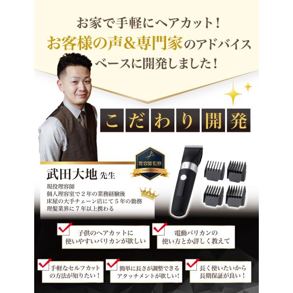 「髪が伸びてきた 子供 の ヘアカット に」「 散髪 に通うのが面倒だから セルフカット で 刈り上げ たい メンズ に」という用途で開発された バリカン 。