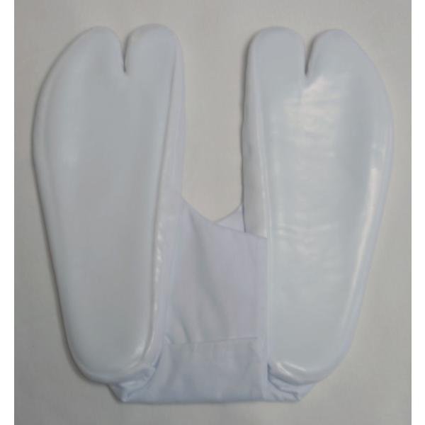 以前販売しておりました天然ゴム系の樹脂ゴムを塗布した阿波踊り足袋に比べ、圧倒的に耐候・耐摩耗性に優れ、足に沿うような柔軟性を備えております。