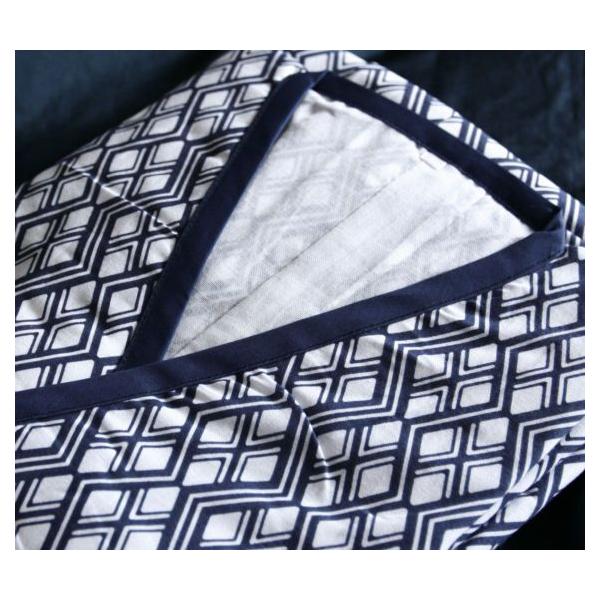 左右の前合わせをヒモで結ぶ羽織式に仕立ててあり、帯紐を廻す手間がありませんので、着崩れやはだける心配がございません。