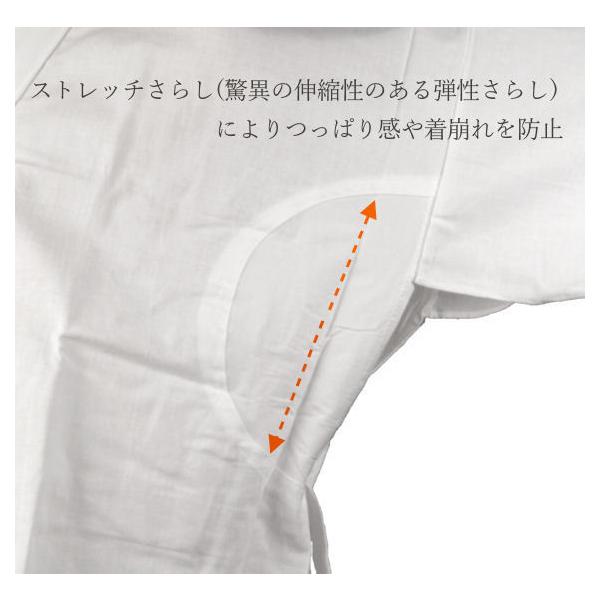 脇の下(袖付部分)にはめ込んたストレッチさらし(驚異の伸縮性のある弾性さらし)が伸縮しますのでつっぱり感が無く、着崩れのない活動的な肌着です。