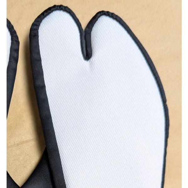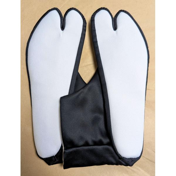 滑らかで艶がある朱子織生地を使用した、表が黒の朱子・底が白の杉底・裏生地は内部にネルを使った男物黒朱子足袋です。