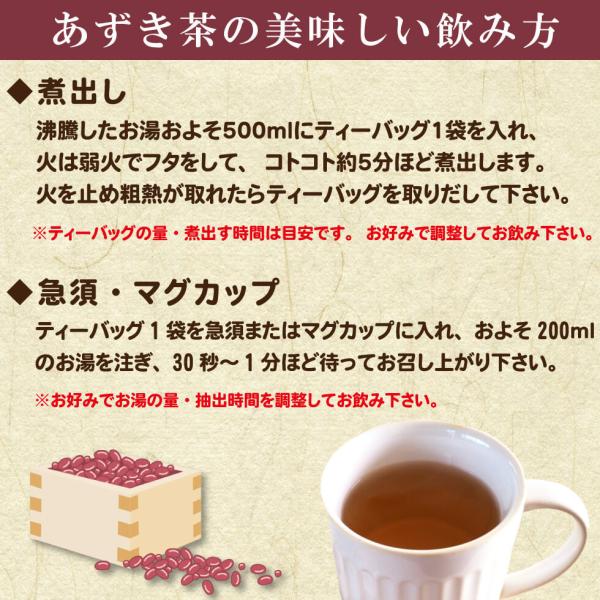 北海道産あずき100%の国産 小豆茶です。 小豆の香ばしさと美味しさを残し、飲みやすいすっきりとした味わいに仕上げました。 サポニンやポリフェノールなどの栄養を含む健康茶です。 ノンカフェインですので、妊婦さんやお子様にも安心。 簡単・お手軽にお飲みいただける ティーバッグタイプです。