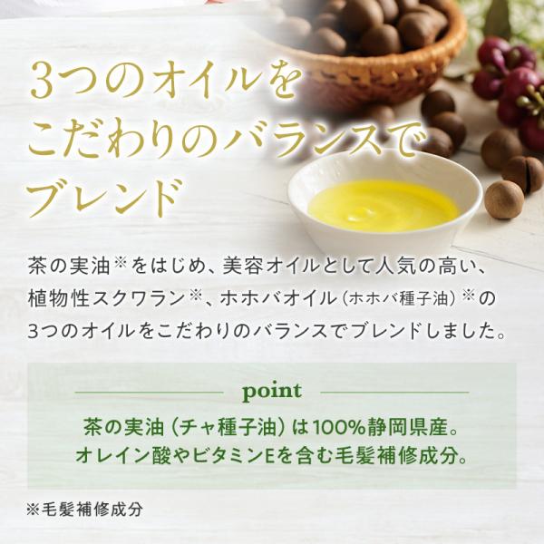 ■ヘアケアにご使用の場合、タオルドライした濡れた髪に適量を手に取り髪全体へなじませます。その後、ドライヤーで乾かし仕上げます。乾いた髪に少量をなじませスタイリングもできます。