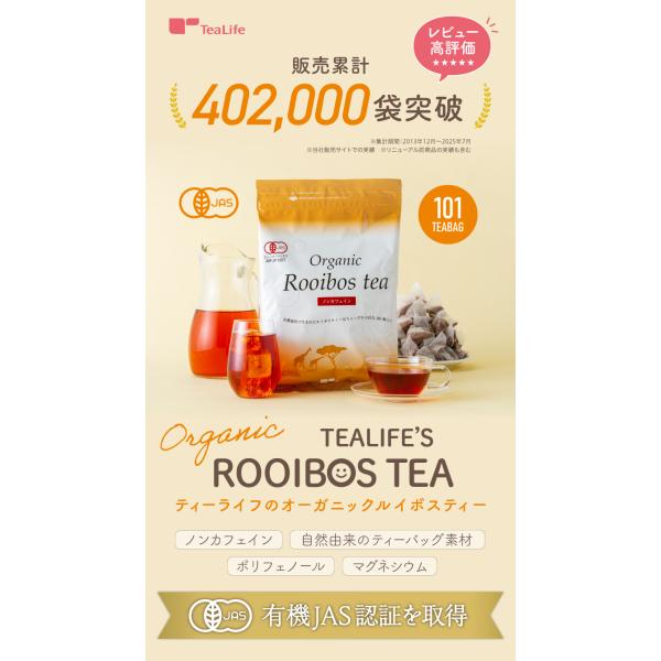 ルイボスティー オーガニック オーガニックルイボスティー 101個 ×2袋 水出し ルイボス 有機 ティーバッグ ノンカフェイン ティーライフ 送料無料 まとめ買い