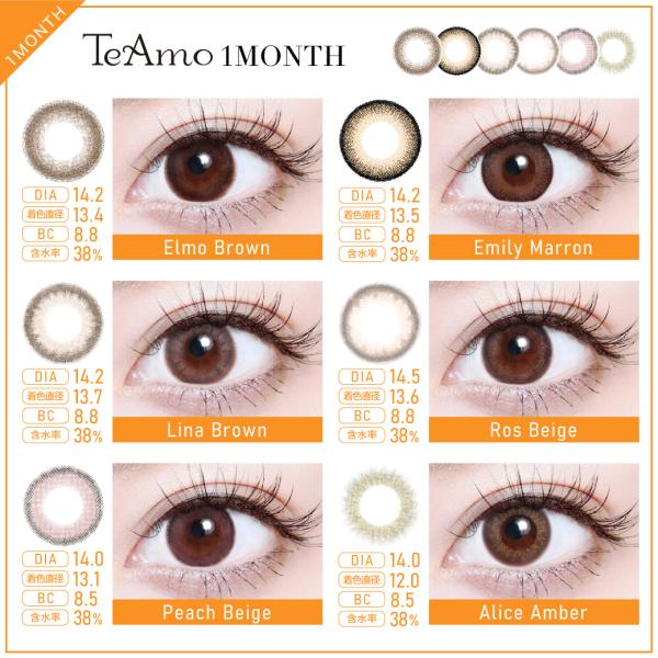 カラコン マンスリー TeAmo 2枚売り カラーコンタクトレンズ ブラウン ブラック グレー ピンク 送料無料 1ヶ月 度あり 度なし ティアモ tiamo