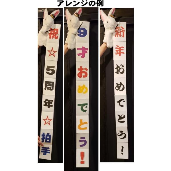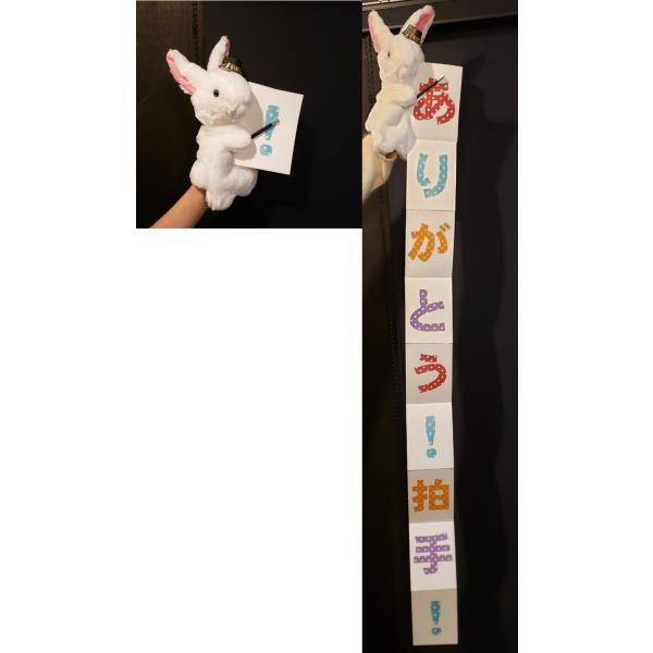 ウサギさんに文字(またはイラスト)の書かれた複数の紙を1枚ずつ渡していきます。