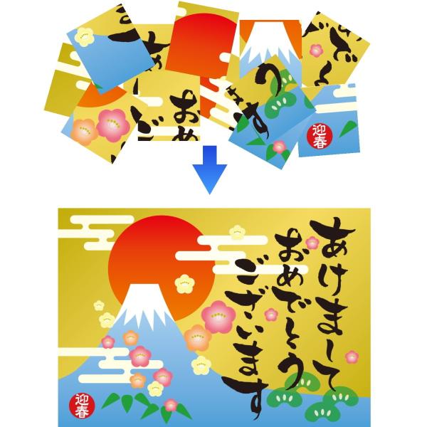 手品屋 ジャンボパズルシート お正月(バラバラの紙が一瞬でつながって大きな1枚のメッセージシートになるマジック)新年会に最適!