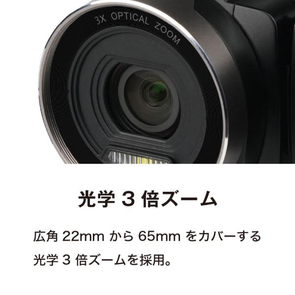 ・広角22mmから65mmをカバーする光学3倍ズームを採用
