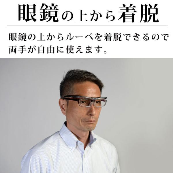 眼鏡の上からかければ両手があくので、作業しながらでも使えます。