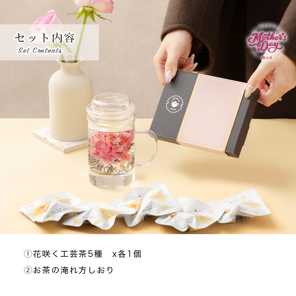 【ポイント3倍】母の日 カーネーション 工芸茶 花咲くお茶 リムテー 花茶5種 中国茶 ティーセット ギフトセット 詰め合わせ 贈り物 誕生日 プレゼント
