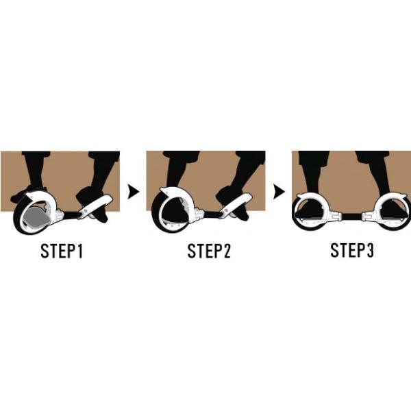 くねくねした動きで手錠のようなスケートサイクルの輪の中に足を入れて体重移動するだけで進むことができます。