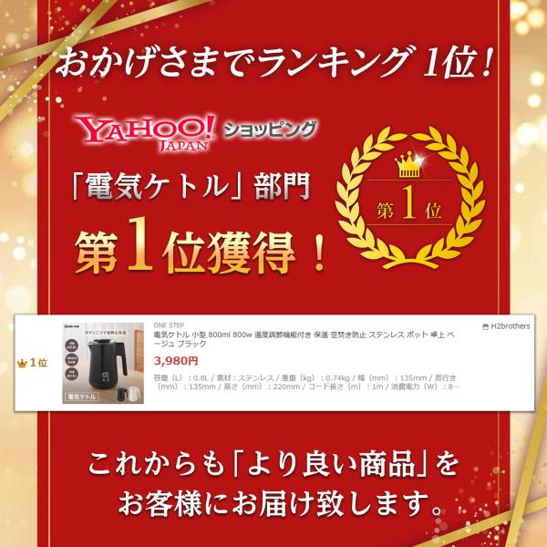 電気ケトル 小型 800ml 800w 温度調節機能付き 保温 空焚き防止 ステンレス ポット 卓上 ベージュ ブラック 2月中旬頃入荷予定