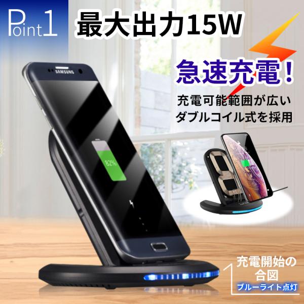 ワイヤレス充電器 急速 15W iPhone13 置くだけ充電 折りたたみ式 縦置き 横置き iPhoneSE iPhone12 iPhoneXs Android スタンド おしゃれ