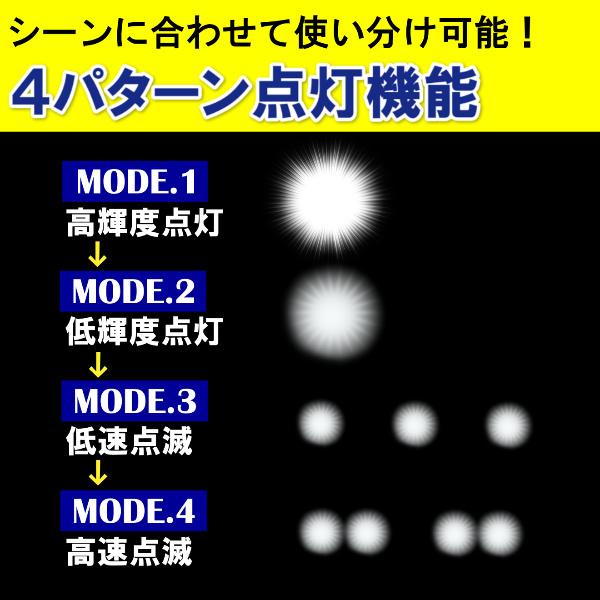 点灯モード:高輝度点灯、低輝度点灯、低速点滅、高速点滅