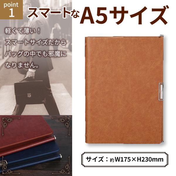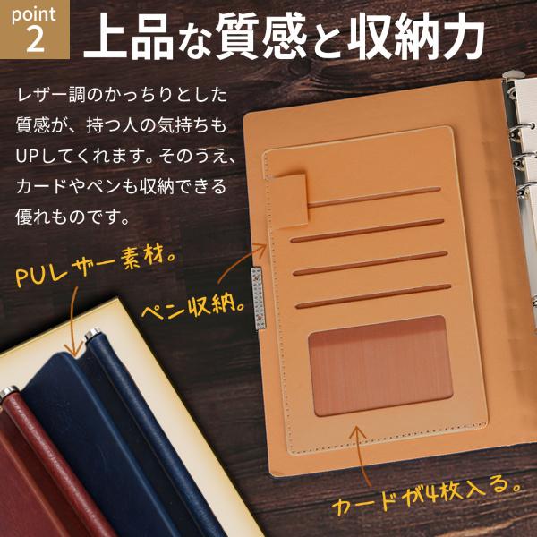 システム手帳 A5 6穴 ビジネス PUレザー 革 シンプル 手帳カバー ケース スリム 薄い コンパクト 軽量 リフィル ノート メモ帳 ダイアリー 日記 卒業
