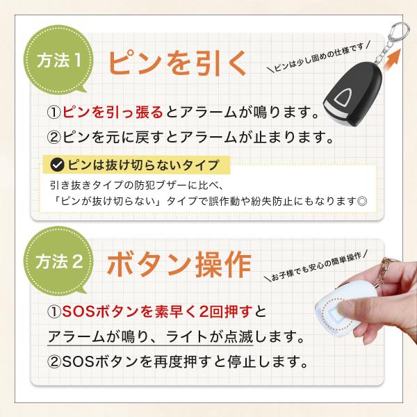 (2)SOSボタンを素早く2回押すとアラームが鳴り、ライトが点滅します。