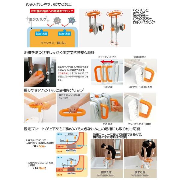 ・握りやすいハンドルと浴槽内グリップ