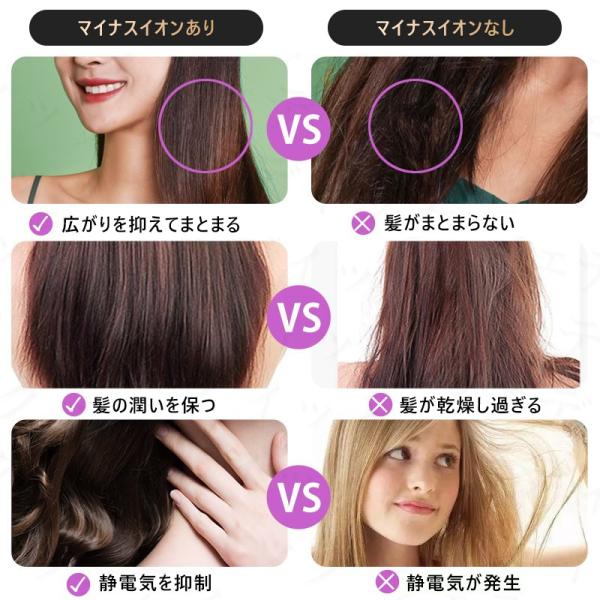 マイナスイオンドライヤーは風を出しながらマイナスイオンを放出し、空気中の微細な水分と結合することで髪表面のプラスの静電気を中和し、髪にツヤ感やうるおいを与え美しい髪を実現できます。